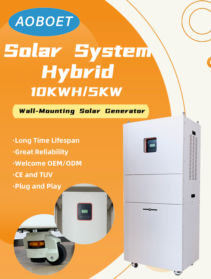 10KWH Solar Hybrid Generator / Hybrid Lithium ESS AOBOET10kWh Solar Hybrid Generator the combination of battery, inverter and charger. Our Solar generator is plug and play, what you only need between the solar panels and load is our production.The generator also means the solar energy storage system......