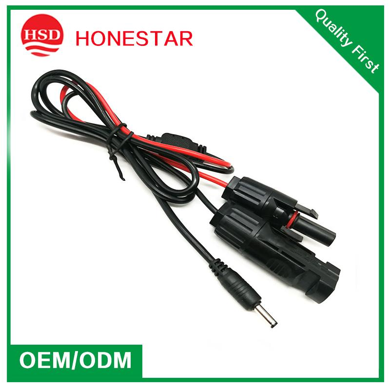 Product features: used in the solar panel charging package solar controller DC power conversion power connected to the motorcycle charging.The main line is 2464 black line 16AWG sub-line is 1015 black line 14AWG line (2.0 square copper) molding.(The factory produces directly and can customize various colors and DC adapter models according to customers' requirements)